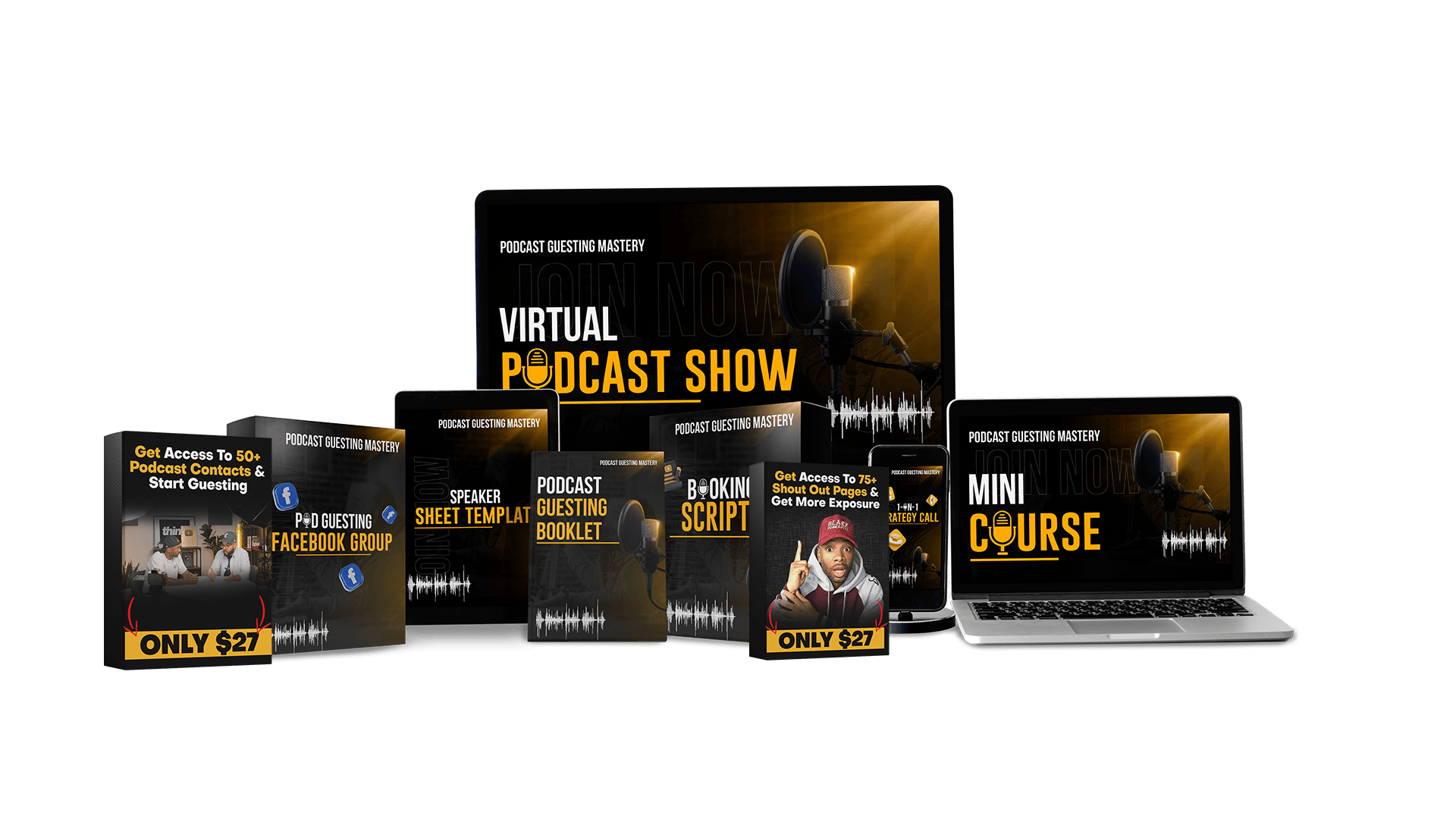 Do you want the proven steps to become a successful podcast guest? I created this package specifically for you to get started with a blueprint in hand. Go through the steps at your own pace and start building your podcast guesting career.